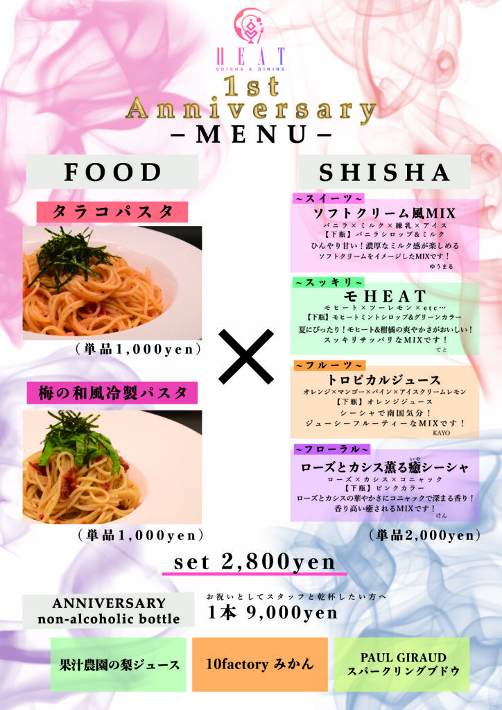 周年は、限定メニュー!限定シーシャ!